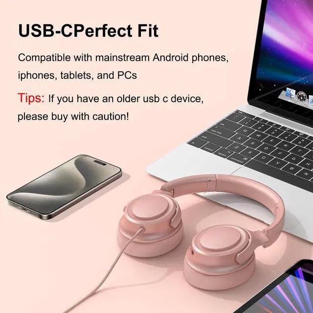 INSTANT PLUG & PLAY USB-C CONNECTIVITY: Forget frustrating Bluetooth pairing and dead batteries. These wired headphones feature a modern USB-C connector for a stable, lag-free audio experience. Simply plug into your MacBook, iPad Pro, Galaxy, Google Pixel, or any USB-C enabled laptop or tablet for immediate sound. [IMPORTANT