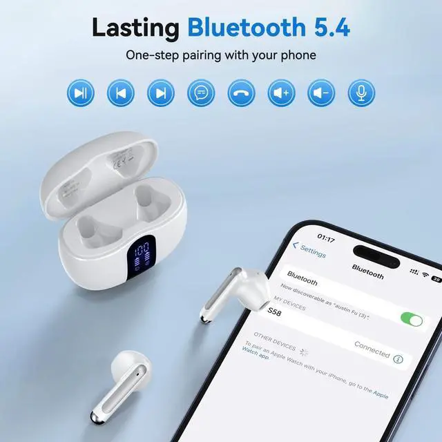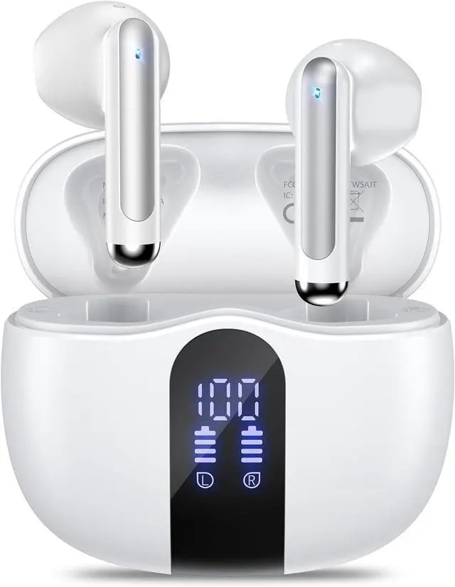 Dual LED Power Display: Each wireless earbuds offers a 6-8 hours of playtime per charge, and with the charging case, you' re treated to a staggering 50 hours of uninterrupted music bliss. The USB-C charging port can provide faster charging. Fully charge the case in only 1.5 hours. The LED digital display on the charging case allows you to clearly know the power of the wireless ear buds and the charging case