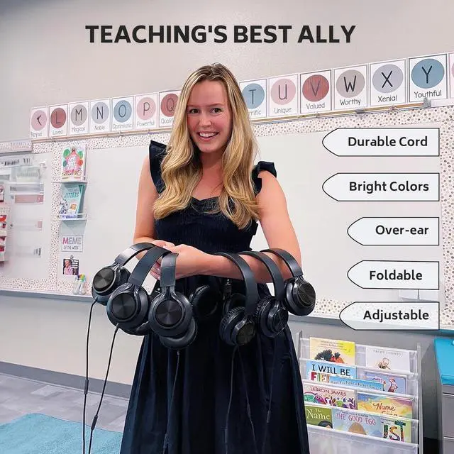 High-Quality & Durable: Made with thickened nylon cable and gold-plated jacks, these headphones can withstand up to 44 lbs of weight and maintain a stable connection after over 10, 000 uses. Invest in a reliable and long-lasting tool for your student' s education