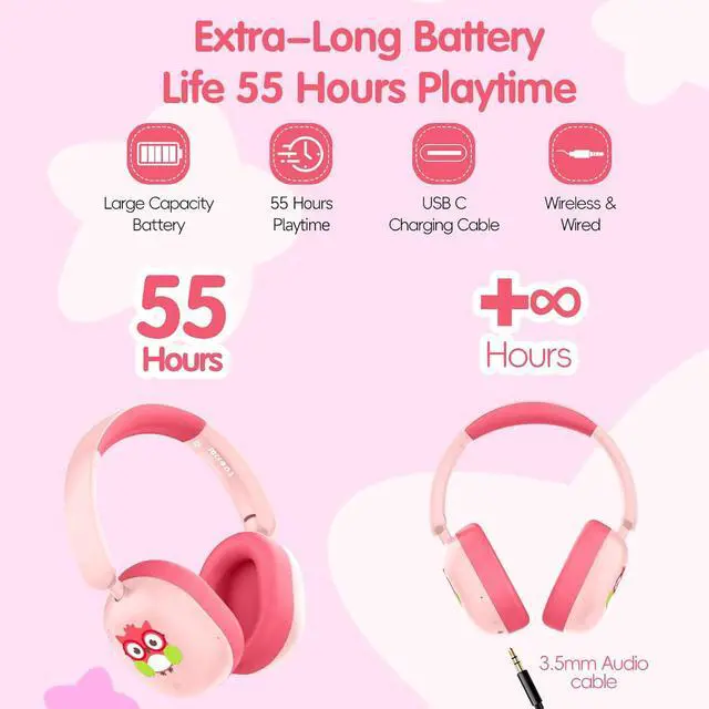 55-Hour Extended Playtime: Exceptional battery life for all-day use. Supports 55+ hours playback (volume at 60%)covers 5 school days, long flights, or weekend adventures. Charges fully in 2 hours via USB-C.