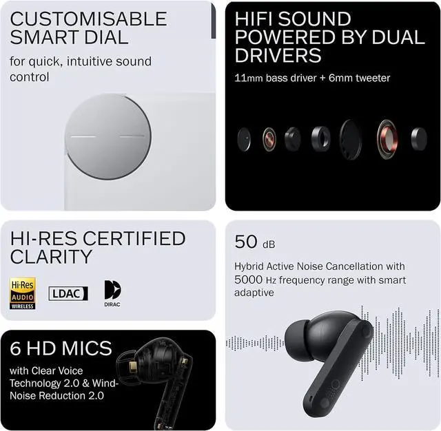 Dirac-Tuned Dual Drivers: Equipped with an 11mm ultra-bass driver and a 6mm tweeter, these noise cancelling earbuds support LDAC lossless audio transmission for rich, detailed sound. Dynamic Bass Boost 2.0 further refines the rhythm, creating an immersive listening experience.