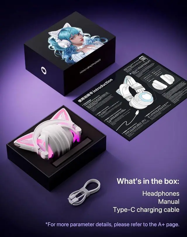 Best G-ift for Girls - Yowu cat ear headsets comes with 2 in 1 Type-C audio/charging cable, a perfect g-ift choice for yourself and your loved ones. Yowu offers a 1-year warranty with ongoing after-sales service, including 24-hour customer support, dedicated to enhancing your shopping experience.