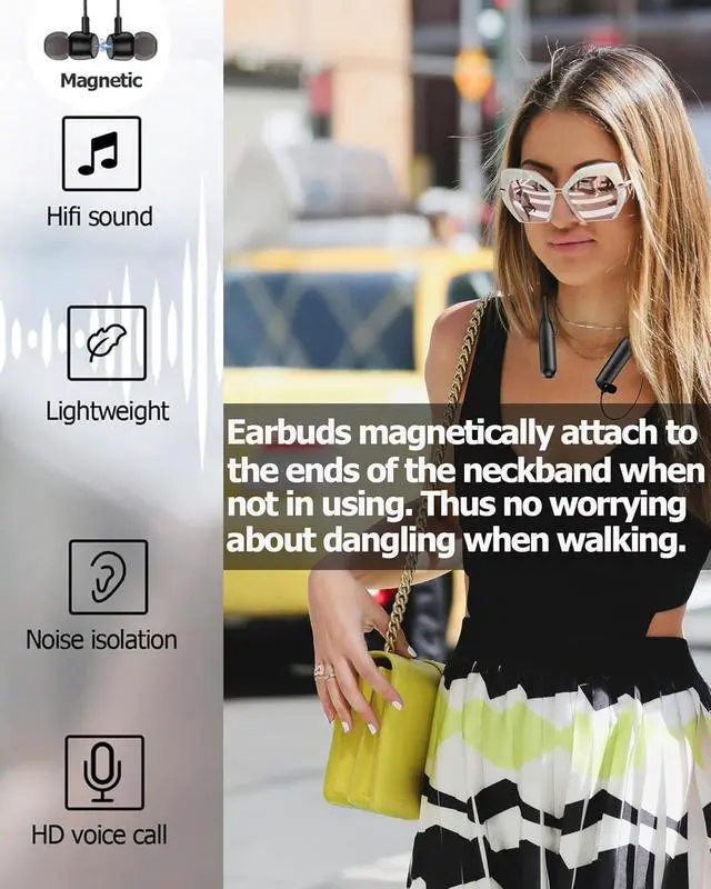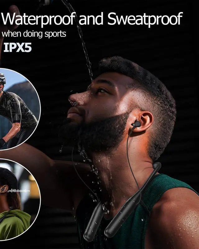 [Waterproof & Sweat-resistant] Thanks to the IPX5 waterproof & Sweat-resistant finish, we use this neck bluetooth wireless earbuds in different weather, don' t worry about the rainy day.