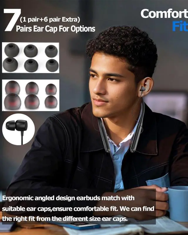 [Comfort Fit]: The earbuds are angled designed to fit our ear canals, that provides super comfortable wearing experience and not easy to falling out. The earbuds are good fit for different sizes ears. The UV coated silicone neckband provide us silky skin touch experience and more durable. The magnetic metal earbuds can avoid cords get tangled.