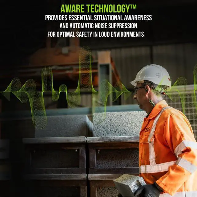 All-day battery life: Power through your shift with up to 24 hours of use with Aware Technology, or 15 hours of Aware and Bluetooth together. These OSHA approved earbuds recharge quickly via USB-C -- a quick 15-minute charge delivers 2 additional hours of listening. These work earbuds will work as hard as you do.