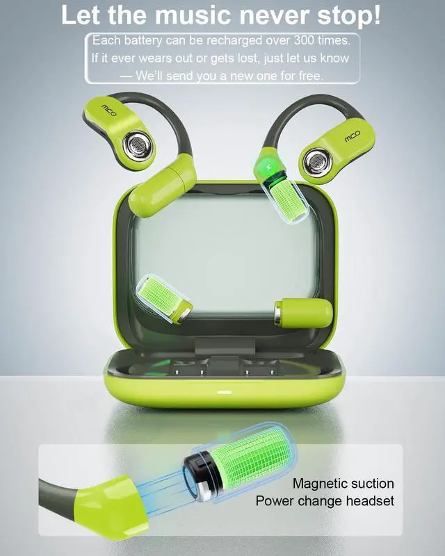 Leading the New Era of Longer Headphones Power - OJW brand patented of battery swappable. Say goodbye to carrying chargers. The backup battery is in the compartment by default. Backup battery replaced repeatedly, accomplish charged and worn at the same time. Each pair of batteries is charged repeatedly up to 5 times. When your battery in use is out of power - Full Power just 1 Second to Replacement.