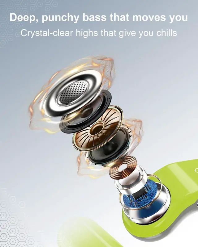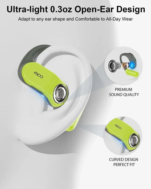 Premium Audio Experience - Our OWS earbuds 13.2 mm dynamic drivers deliver crystal-clear mids and highs with a deeper, richer bass for an rich listening experience. OJW open ear hooks headphones dual ENC microphones reduce ambient noise by 90% for crystal-clear calls even in windy conditions.