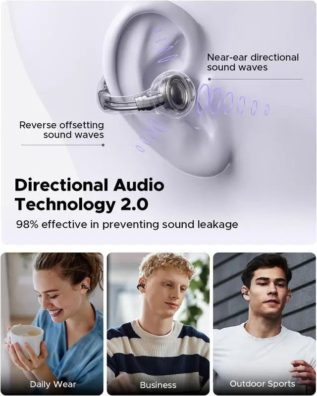 [Minimal Sound Leakage & Bluetooth 5.4 ] - Truefrees Audio Technology 2.0 uses directional sound holes and reverse sound wave cancellation to reduce sound leakage by up to 98%. Bluetooth 5.4 ensures fast, stable pairing and low-latency audio across all your devices.