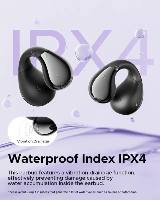 [All-Day Battery Life & Water Resistant] - Get up to 25 hours of total playtime ( 5.5 hours per charge + 19.5 hours with the case). A quick 10-minute charge gives 1 hour of use. With an IPX4 rating, these clip-on earbuds resist sweat and light rain perfect for workouts, commutes, or outdoor use.