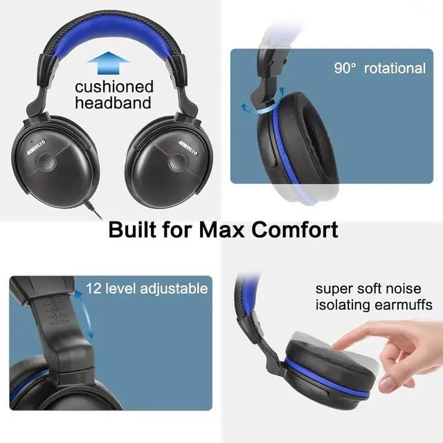 COMFORTABLE & ADJUSTABLE: 12 level retractable cushioned headband secures a best fit to your head. Ergonomic designed protein earmuffs are carefully padded and fully sealed for max wearing comfort and noise isolation. Perfect for long time private TV listening.