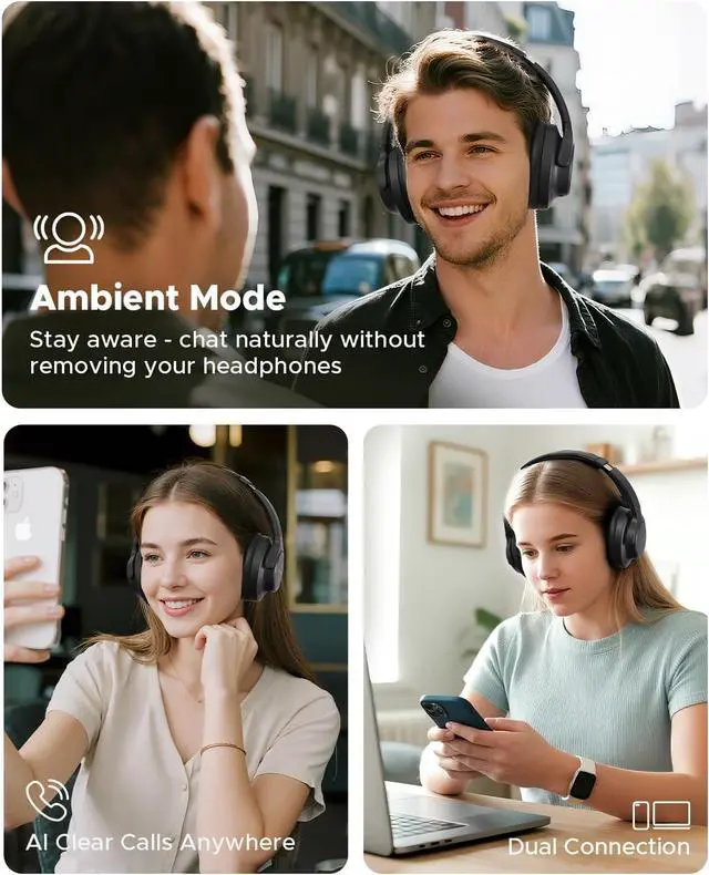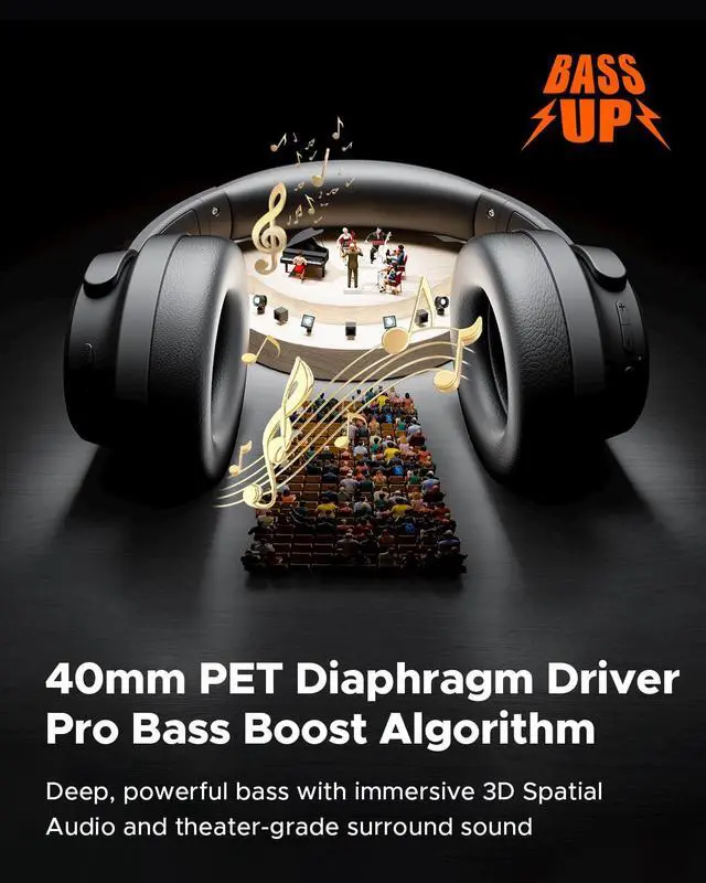 [Immersive Spatial Audio & Deep Bass] - Powered by 40mm dynamic drivers, these wireless Bluetooth headphones deliver rich, resonant bass and clear mids and highs. Enhanced with 360° spatial audio and a bass optimization algorithm, the HF-10 noise cancelling headphones create an immersive surround sound experience for music, movies, podcasts, and gaming.