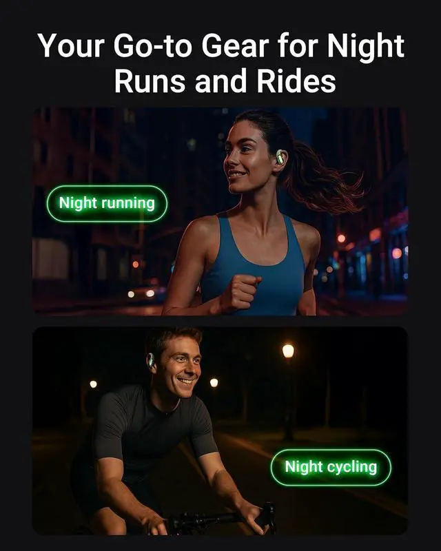 Be Seen, Stay Safe Featuring 40 high-brightness 3D floating LED lights, these earbuds ensure youre visible from over 10 meters, enhancing safety for nighttime workouts.