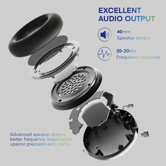 Studio-Grade Audio 40mm dynamic drivers + 96dB/mW sensitivity pump out crisp highs, punchy bass, and immersive soundstage. Ideal for audiobooks, music.