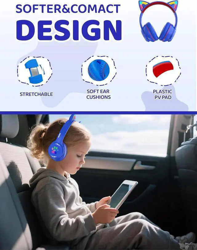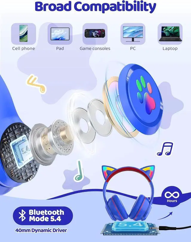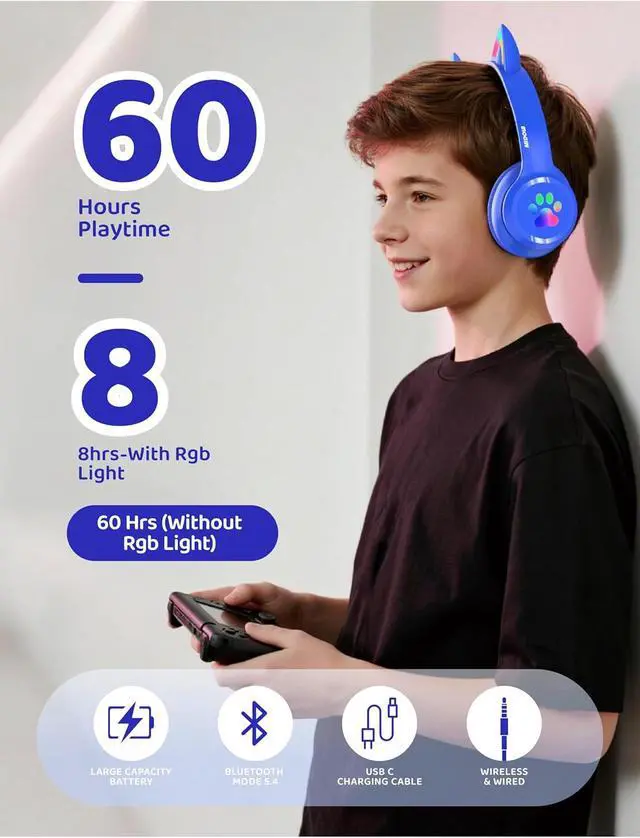Led Light Cat Ear Headphones: 8hrs-with RGB light) for 60 hrs (with RGB light) playtime Bluetooth headphones(hands-free calling) /Or Aux-in. It can listen anytime in both a wired and wireless capacity. The wireless design is handy for avoiding tangles, and this cord is detachable.