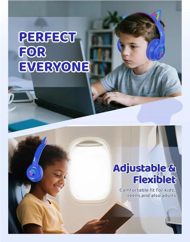 Comfortable and Collapsible Design: The adjustable headband gives the headphones some impressive flexibility, so they can adapt to the shape of your head for a perfect fit. Soft ear cushions and long-wearing comfortable without stress, fit for growing teens even adults. It' s great travel partner, let you ones enjoy the journey without bothering you.