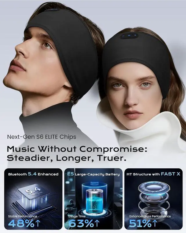 Dual-Use Design: Sleep/Sports Headphones - Ideal for side sleepers and athletes alike. By day, it' s a comfortable, sweat-wicking headband for workouts. By night, it transforms into an effective sleep headphones and mild noise-reducing sleep aid to block distractions and promote restful sleep.