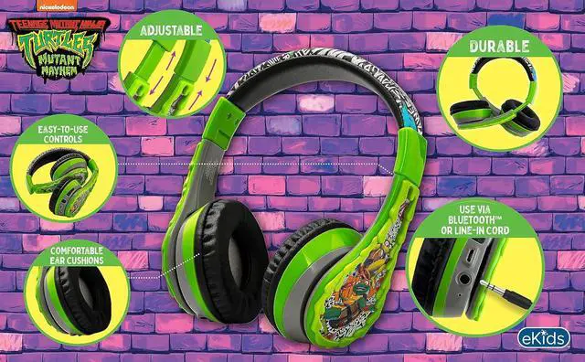 Teenage Mutant Ninja Turtles: Mutant Mayhem. An adjustable headband and soft ear cushions provide a custom fit for boys and girls alike.