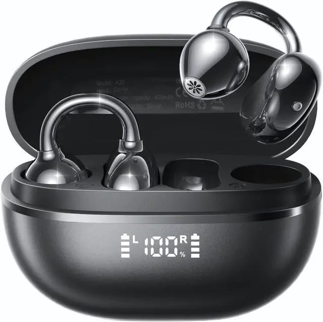 Digital Battery Display & Extended 45H Playtime. The compact charging case includes a smart digital display showing the exact battery of each earbud and the case. With up to 8 hours per charge and 45 hours total, these wireless Bluetooth 6.0 open-ear earbuds deliver worry-free listening for work, commuting, or workouts. Fast USB-C charging ensures music is always ready when needed.
