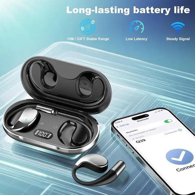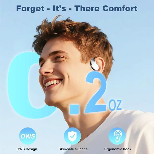 Breathable and Waterproof Durability These open-ear earbuds feature an open design that keeps the ears ventilated and allows awareness of the surrounding environment. With IP54 waterproof and dustproof ratings, they remain reliable in sweaty, rainy, or dusty conditions, making them ideal for running, cycling, studying, or high-intensity workouts.