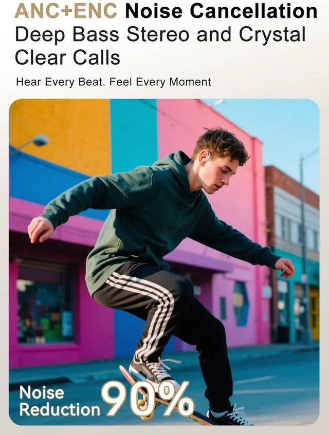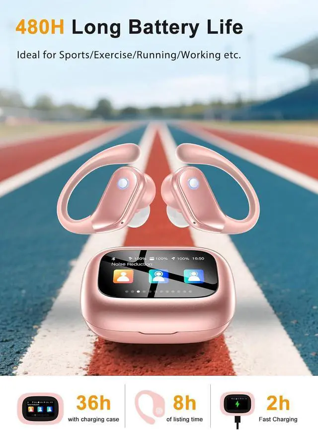 Bluetooth 5.4 for Ultra-Stable Connectivity: Powered by the latest Bluetooth 5.4 chip, these wireless earbuds deliver a smooth, low-latency connection as fast as 60ms and remain stable within a 33ft range. Pairing speeds are up to 200% quicker than older Bluetooth versions, ensuring instant, reliable links even in busy gyms, buses, or subways. Fully compatible with iPhone and Android devices, they keep your calls and audio uninterrupted wherever you go.