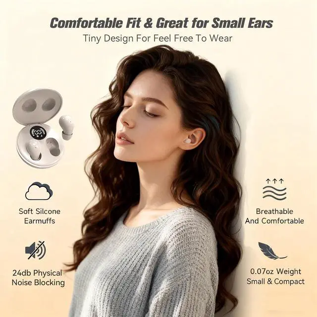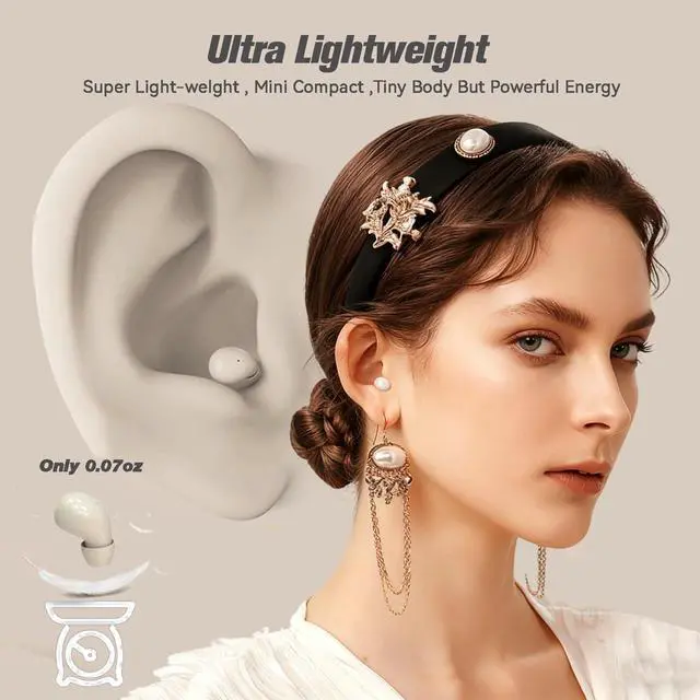 Mini and small Designed for Small Ears These micro small wireless earbuds are mini and lightweight, weighing only 0.1 oz. The shape of the invisible earbud is designed to fit the ear. It is comfortable to wear without strain. When wearing best earbuds for small ear canals, they are almost unnoticeable and can be worn during work or leisure. You can wear it all day without pressure.