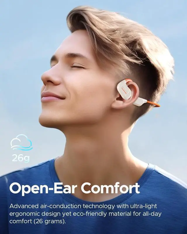 [Open-Ear Design & Enhanced Awareness] - The on-ear wearing avoids entering the ear canals or creating a sealed environment, minimizing ear fatigue during prolonged use. The integration of open-ear design and air conduction technology allows you to remain connected to your surroundings, promoting awareness and alertness while enjoying your music.