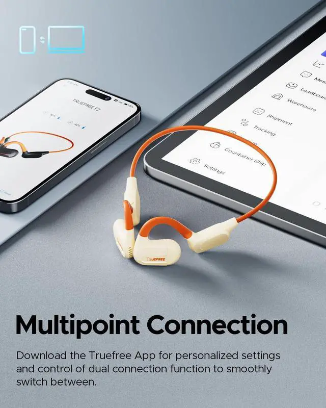 [Multipoint Connection & App Control] - Benefit from the dual connection function, enabling seamless connection of the F2 headset to two devices simultaneously with effortless switching between them. Download the TRUEFREE App from the Apple Store or Google Play to activate or deactivate a multipoint connection and access additional customized settings, such as preset EQs, music and call control, and more for a personalized experience.