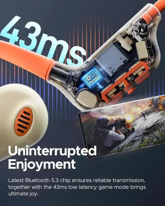 [Pleasant Sound & Immersive Enjoyment] - Harnessing 16.2 mm bio-compound diaphragm drivers and an open soundstage, these headphones deliver rich sound details, enhancing your experience during sports activities. With the inclusion of the latest Bluetooth 5.3 technology and a 43ms low latency game mode, enjoy an immersive audio and visual experience.