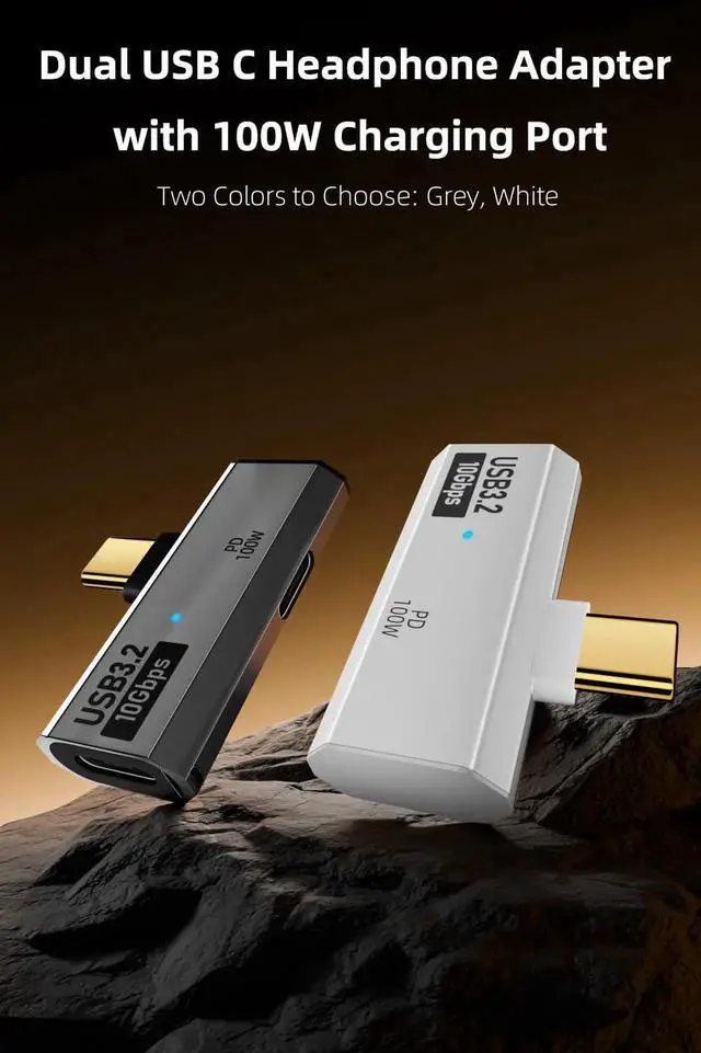 Dual USB C Headphone Adapter with 100W Charging Port, 2-in-1 USB Type C Splitter Dongle for Rog Ally, Steam Deck, Quest 2, iPhone 15 Series, iPad, MacBook and More Type C Device