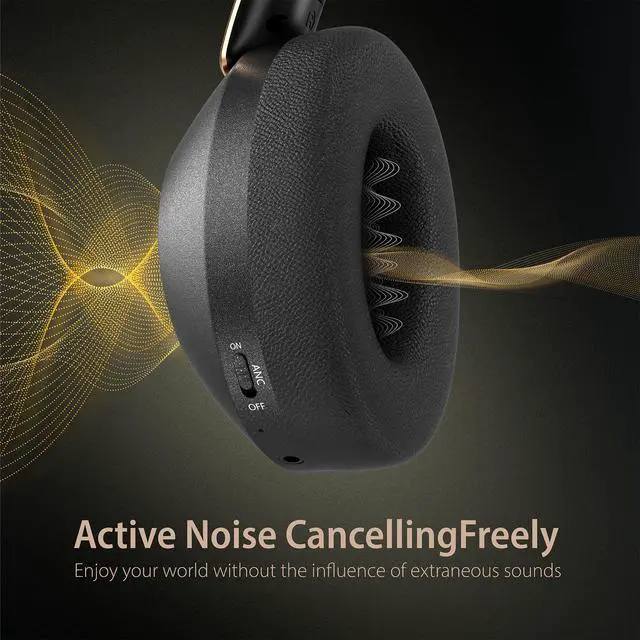 VAREQOY Active Noise Cancelling Headphones, 100H Playtime Headphones Wireless Bluetooth, Bluetooth Headphone with Mic, Over Ear Wireless Headphone with Deep Bass, Fast Charging for Travel