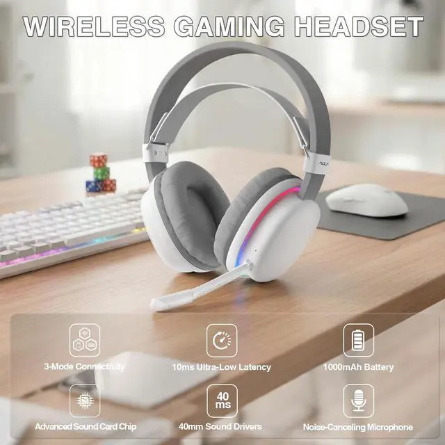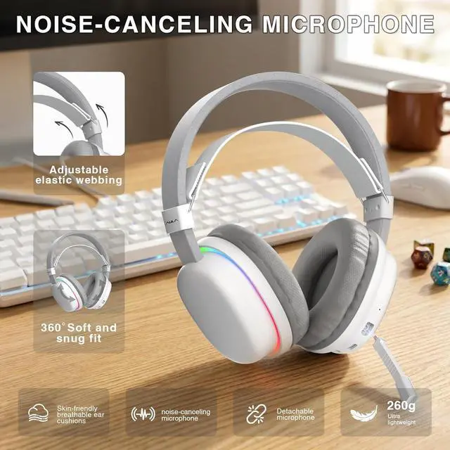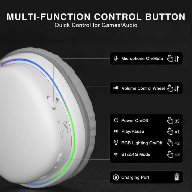 65-Hour Ultra-Long Battery Life: This wireless headset with microphone incorporates a 1000mAh rechargeable battery, delivering up to 65 hours of playback (20 hours with RGB lighting activated). Its 16 million-color RGB lighting synchronizes with gaming peripherals, creating an immersive gaming atmosphere