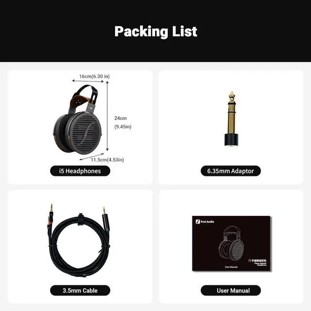 Fosi Audio i5 Open-Back Planar Magnetic Headphones with 97mm Ultra-Large Diaphragm, CNC Metal & Walnut Wood, Audiophile Wired Studio Headphones for Multi-Source Devices