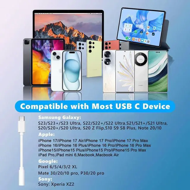 Dongle Adapter for iPhone 17: Belcompany usb c to 3.5 mm audio adapter are widely compatible with most of the type c devices such as iPhone 17/17Air/17Pro/17Pro Max/ 16/16 Plus/16 Pro/16 Pro Max/ 15/15 Plus/15 Pro/15 Pro Max Galaxy S23 Ultra/S23/S23+/S22 Ultra/S22+/S22/S21 Ultra/S21+S21/S20 Ultra/S20/S20+/S10/S9 Note 20 Ultra/10/10+/9/8 iPad Pro MacBook Pxel 7 6 5 4 3 2 XL and more. Plug and Play &