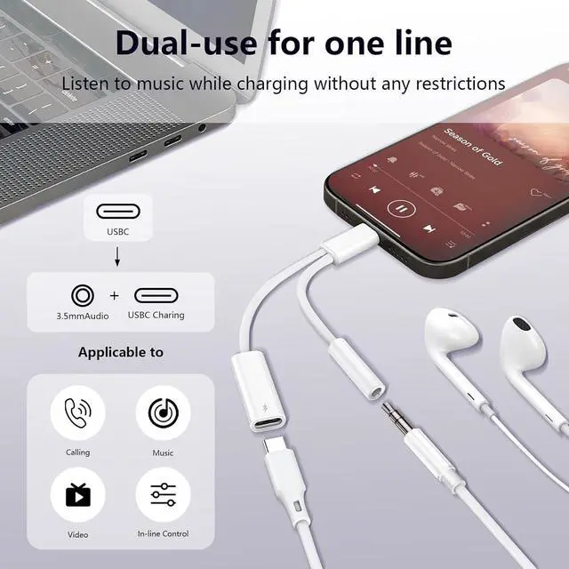 2-in-1 charging/audio: (Include 1 Pack ) Splits your USB-C port into a PD-compatible USB-C port and a 3.5 mm audio jack allowing you to listen to music play games calling or watch videos while fast -charging your device.