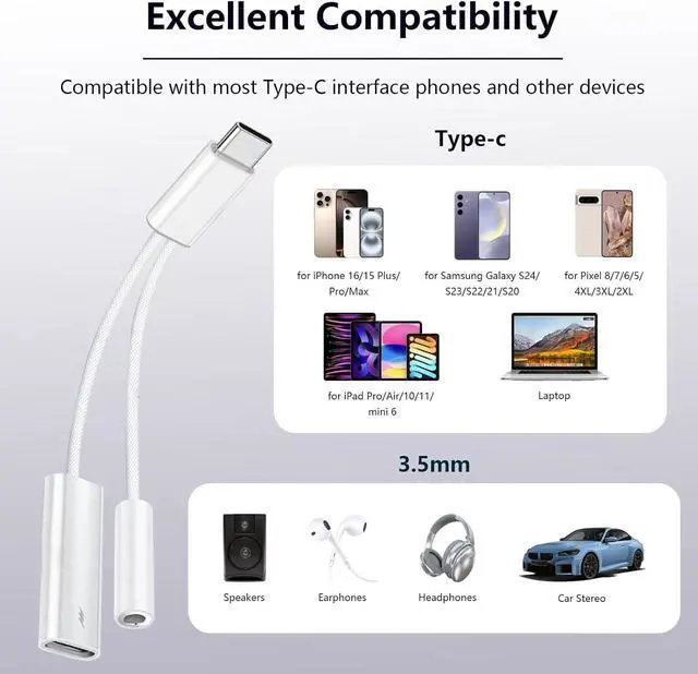 Wide Compatibility: Compatible with a wide range of devices the type c to 3.5 mm audio adapter works seamlessly with all USB-C devices including iPhone 17/17 Plus/17 Pro/17 Pro Max iPhone 16/16 Plus/16 Pro/16 Pro Max iPhone 15 Series Galaxy S23 S23+ S23 Ultra S22 S22+ S22 Ultra S21 S21+ S21 Ultra S20 Ultra S20 Z Flip S20+ S10 S9 S8 Plus i-Pad Pro 2020/2018 Air 4th Generation M-acBook pixel 5 4 3 2 XL and more.