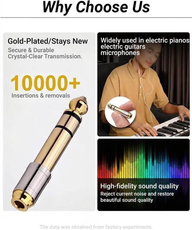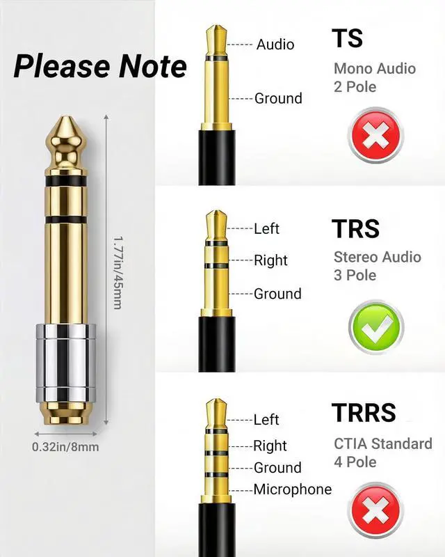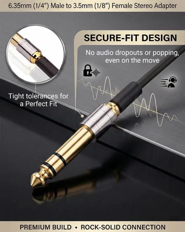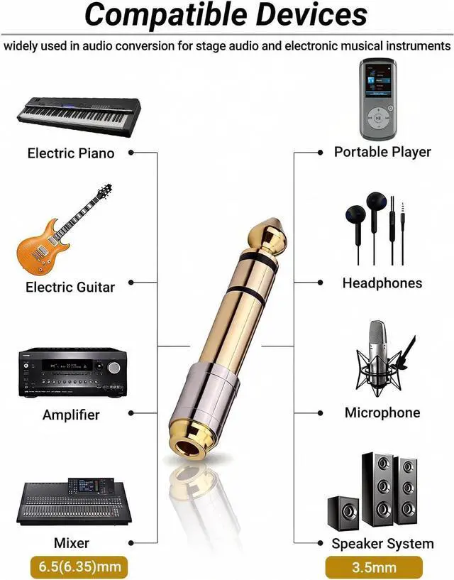 Compatibility]: Effortlessly connect 3.5 mm (1/8) headphones or devices to 6.35 mm (1/4) stereo jacks. Perfect for amplifiers mixing consoles digital pianos and home theaters.