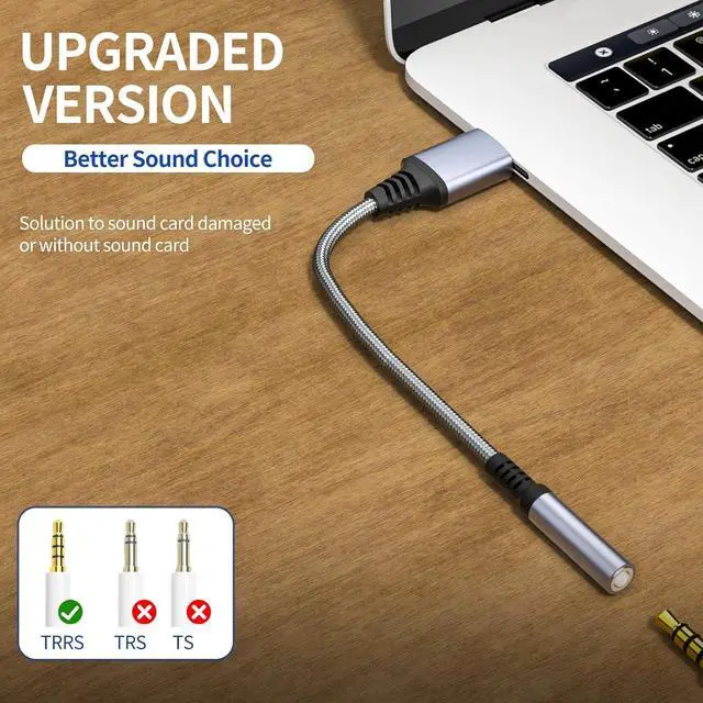 External Stereo Sound Card: Ideal to connect a TRRS 4-pole CTIA&OMP 3.5 mm headset TRRS mic or speaker to PC via USB interface. Support stereo sound listening + speaking dual functions. Easily add a 3.5 mm TRRS aux port for your devices or a replacement for a failed USB sound card audio adapter.