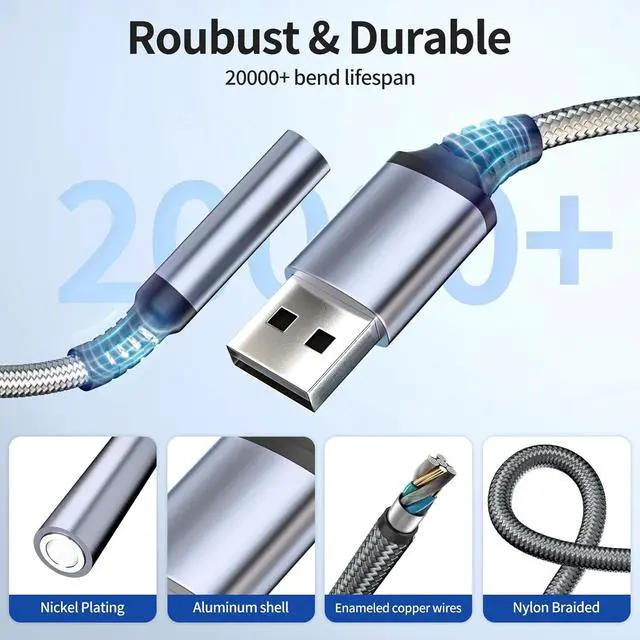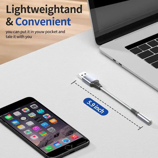 Portable: The USB to audio jack adapter is equipped with an aluminum shell. The nylon braided cable of the USB to 3.5 mm jack audio adapter smaller and lighter than other plastic shells and PVC cable USB audio adapters ensuring a much longer-lasting life.
