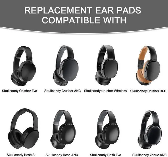 Applicable Models: This replacement ear pads are compatible with Skullcandy Hesh ANC Wireless/Skullcandy Hesh Evo Wireless/Skullcandy Crusher ANC Wireless/Skullcandy Crusher Evo Wireless/Skullcandy Crusher 360/Skullcandy Hesh 3 Wireless/Skullcandy Venue Wireless ect. Please confirm your headphone model before purchase!