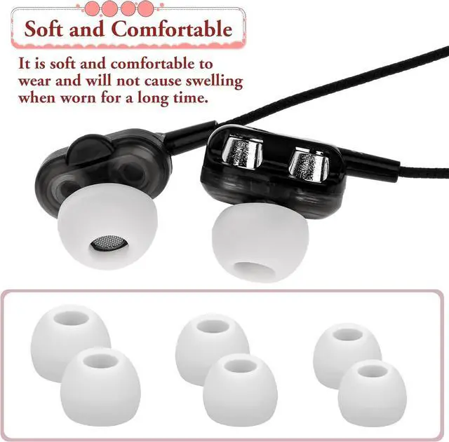 Package ContentsYou will receive 30 earbud rubber tips. There are three sizes of headphone replacement earplugs. There are 10 pieces of each size which is convenient for your daily replacement. Silicone MaterialWhite silicone ear bud covers are made of high-quality silicone material which is soft not easy to tear waterproof and can be used for a long time. Comfortable WearingThis earbud covers feel soft and elastic. It will not make your ears swell and hurt when you wear the earplugs and it can fit your ears comfortably. Sound Isolation EffectWearing headphones instead of earplugs can greatly reduce the surrounding environmental noise allowing you to immerse yourself in your music world.