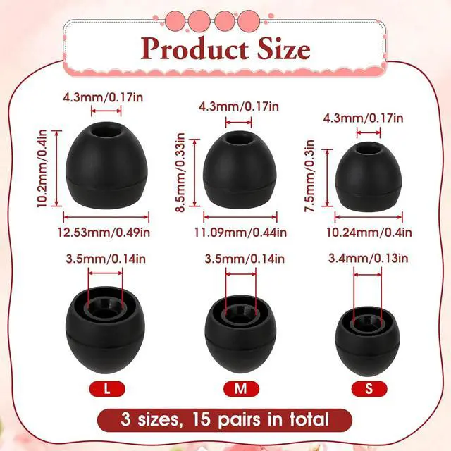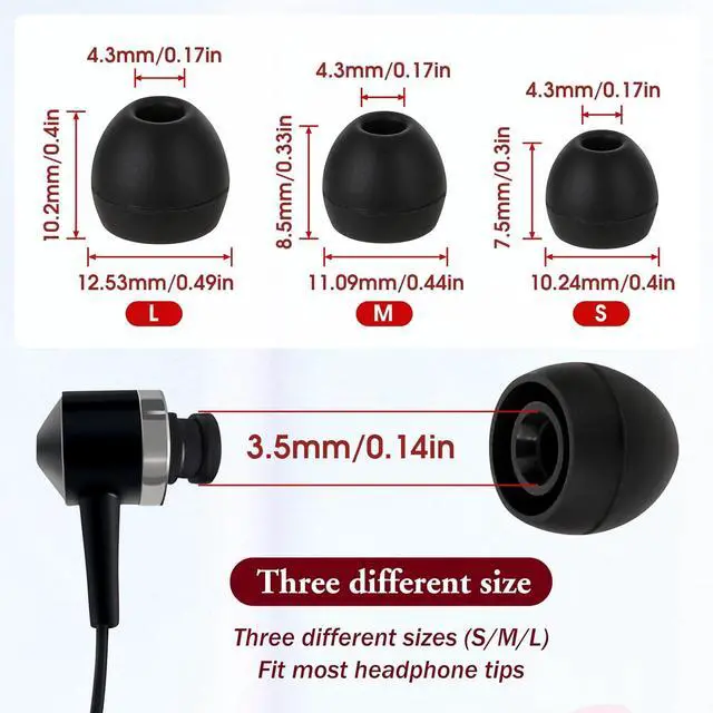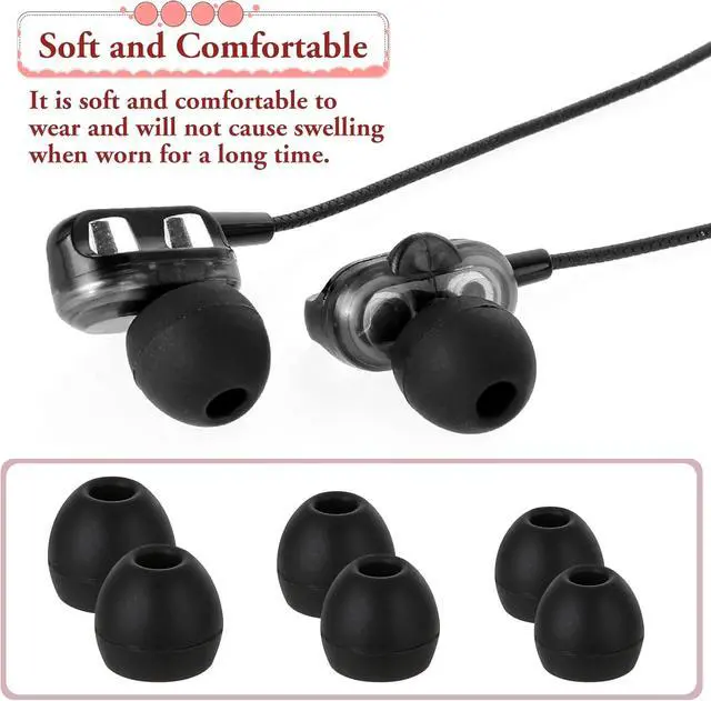 Package ContentsYou will receive 30 earbud rubber tips. There are three sizes of headphone replacement earplugs. There are 10 pieces of each size which is convenient for your daily replacement. Silicone MaterialOur ear bud covers silicone are made of high-quality silicone material which is soft not easy to tear waterproof and can be used for a long time. Comfortable WearingThis earbud covers feel soft and elastic. It will not make your ears swell and hurt when you wear the earplugs and it can fit your ears comfortably. Sound Isolation EffectWearing headphones instead of earplugs can greatly reduce the surrounding environmental noise allowing you to immerse yourself in your music world.