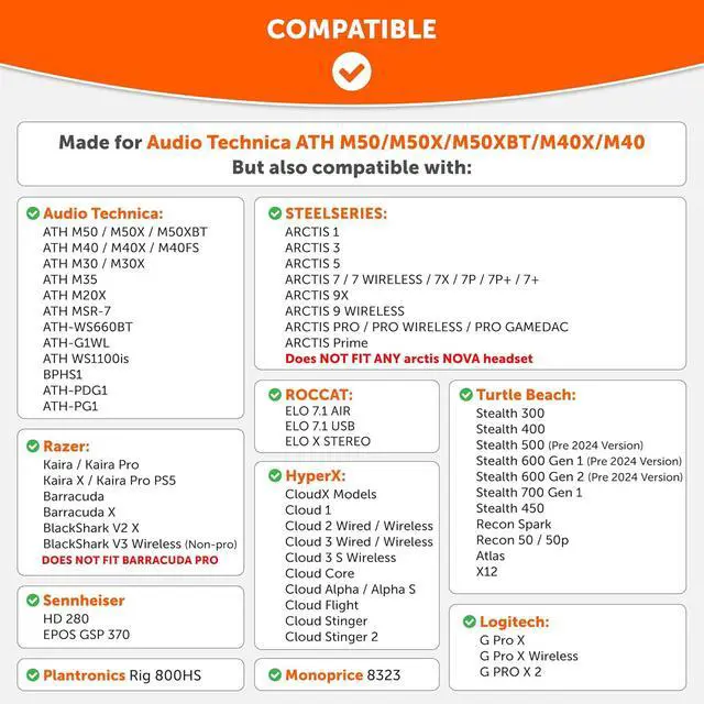 Compatibility: While These Upgraded Extra Thick Earpads Are Meant to Fit the Audio Technica Ath Models They Also Fit Perfectly with the Following Popular Gaming Headsets - Hyperx Cloud 2 Cloud Alpha Cloud Flight Arctis 7 Arctis Pro G Pro X Turtle Beach Stealth 600 & Many More! Check Out Compatibility Photo for the Full List.