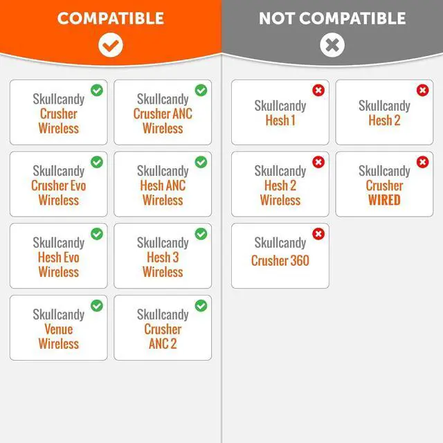 Multiple Skullcandy Headsets: Upgrade your headphones with ease using these replacement earpads that are compatible with various models including Skullcandy Hesh 3 Over-Ear (Wireless) Hesh Evo Crusher ANC Crusher Evo Crusher Wireless Venue and Hesh ANC. Note that these earpads are not compatible with any other headphone modelsEnhanced