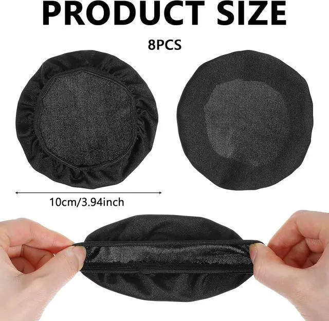 High-Quality FabricsThese headphone ear covers are made of high-quality fabric that is breathable washable sweat-proof elastic stretchy and durable providing you with a comfortable wearing experience. Elastic FabricThese headphone ear pads covers are made of elastic fabric approximately 10cm/ 3.94 inch in diameter and fit headphones with diameters of 9-11cm/ 3.54 - 4.33 inch. Installation is simple and quick requiring no tools making them convenient for your use. Package ContentYou will receive 4 pairs of headphones sweat covers in black. The quantity is ample the color is versatile and the size is universal and suitable for most brands of headphones meeting your various usage needs.