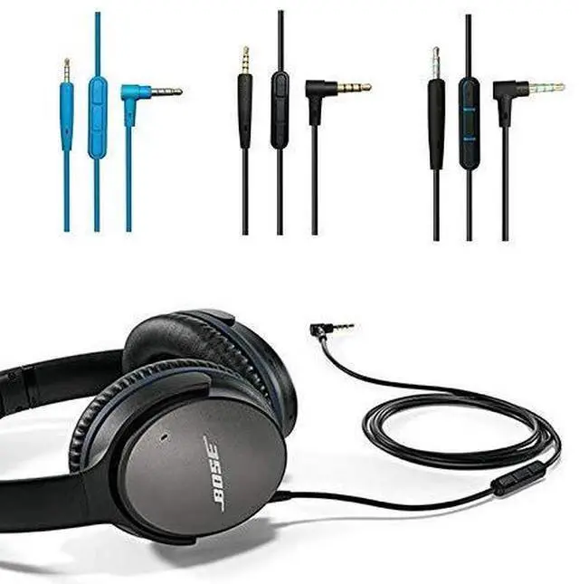 Replacement Audio cable cord wire: Compatible with Bose Quiet Comfort QC 25 QC 35 soundlink soundtrue Headphones. Compatible with Apple iPhone 3GS / 4 / 4S / 5 / 5S / 6 / 6 plus Samsung and parts Android phones. Microphone and Volume control remote buttons In-line microphone control gives you hands-free calls and easy operation for your music.