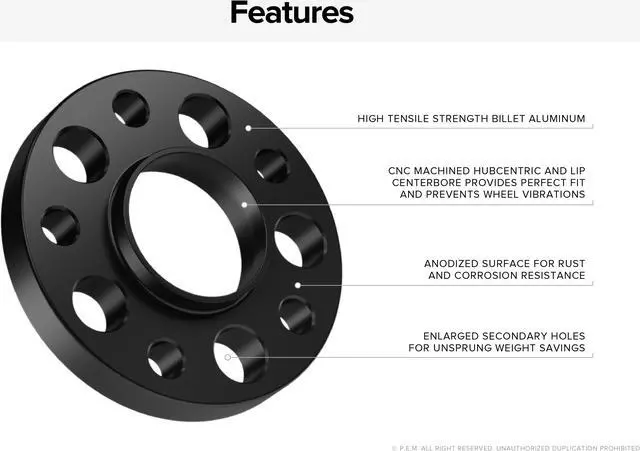 - [MATERIAL & MANUFACTURING] Wheel Spacers are CNC Machined to exact specifications from high quality Aerospace Billet Aluminum. Undergoes anodizing process to prevent surface corrosion and rust. Lug Bolts are manufactured with metric grade 10.9 cold forged steel. Zinc coating provides exceptional corrosion resistance and appearance. Additional Heat Treating Process ensures dependable strength & durability.