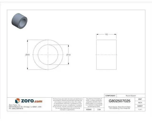 MIDWEST FASTENER 34092 Round Spacer, Black Chrome Steel, 1/2 in Overall Lg, 1/2