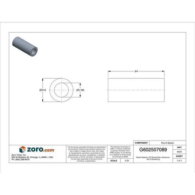 MIDWEST FASTENER 65853 Round Spacer, #10 Screw Size, Aluminum, 3/4 in Overall