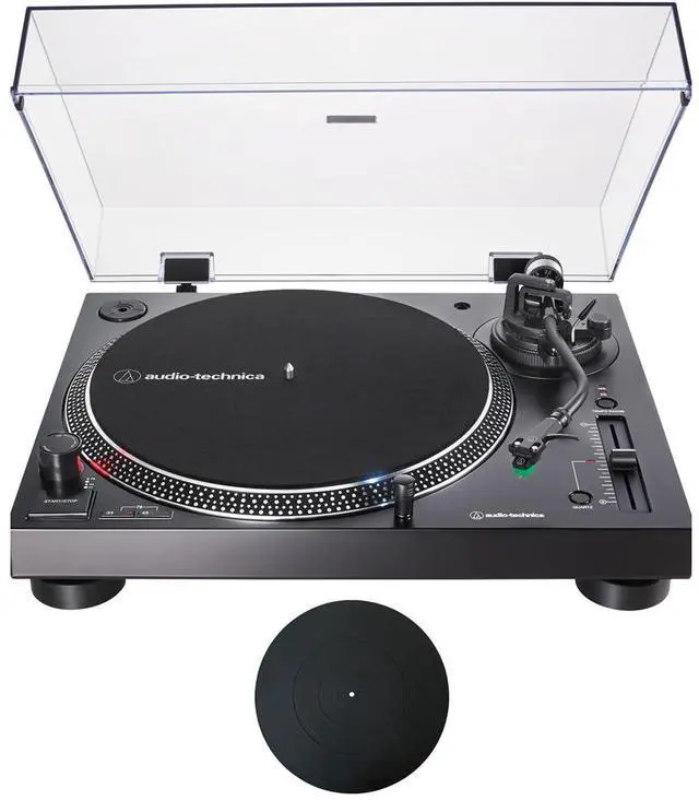 Audio-Technica Direct-Drive Turntable Analog & USB (Black) w/ 12" Platter Mat Bundle