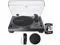 Additional features include a die-cast aluminum platter with felt mat; a start/stop button; selectable high-accuracy quartz-controlled pitch lock and pitch change slider control with +/-8% or +/-16% adjustment ranges; a stroboscopic platter with speed indicator; a removable plug-type stylus target light; external power supply; and a removable hinged dust cover.